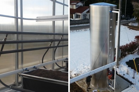 Heating with DuoFin pipe in Fukushima greenhouse and the heat storage tank.