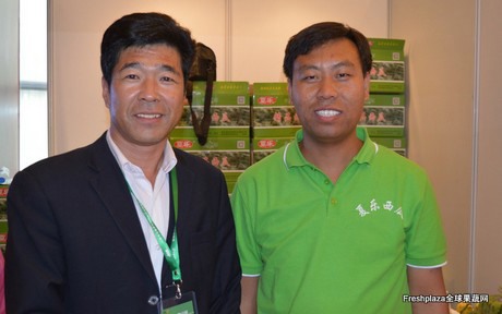Mr. Fan Zhiqiang(right), associate member of the Xiale Quality Watermelon Industry Association, andthe sales manager of Xiale Agriculture Technology Development, Mr. TianHongwei (left).