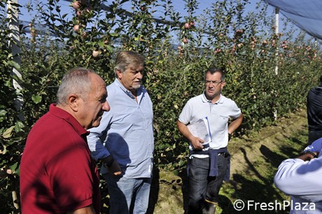 "Tagliani" was the first business visited. Orchard management is practically perfect and vigour is handled through root cuttings. "In 2015, yields have reached 57 tons per hectare and we expect them to be similar this year. Harvesting is carried out when the Brix level is at least 14°, starch degradation is 3.8 and hardness is 9 kg/sq cm."