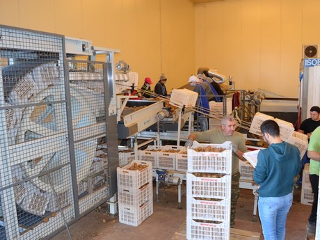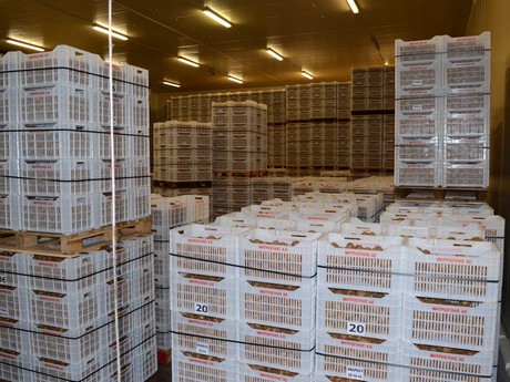 Some hundreds of metres from the citrus packing station in Nafplio, a large sorting, packing and storing warehouse can be found. The optical sorter can sort up to 25 tonnes of kiwis per hour. After sorting, the fruit is placed in pre-cooling and cooled down to 0.0 degrees Celsius. This is followed by storing. Before the start of the 2019 season, the current building should be expanded with room for an additional 2,000 pallets.