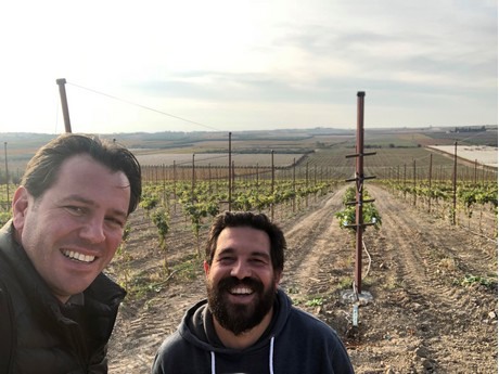 George Saliaris-Fasseas (left) and his colleague on the vineyard.