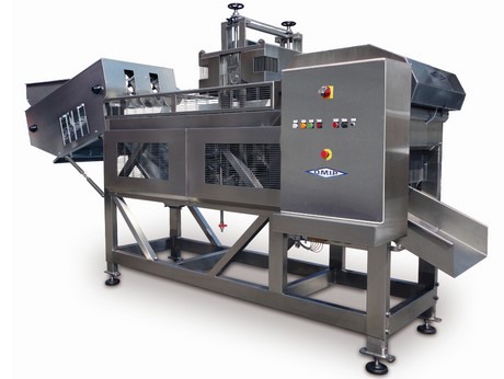 All parts in contact with the fruit are fit for alimentary and hygienic purposes and the structure is completely made of stainless steel. The avocados, appropriately unloaded into the Feeder, are put into the channels of the Orientation station that orientates the fruits and positions them at the ideal cut through appropriate and particular devices. The flexibility of the orientation elements allow the machine to automatically compensate the differences in the fruits that are not perfectly graded.