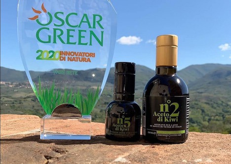 The creation of innovative products, such as young and aged kiwi vinegars, takes place through a process of fermentation that, on average, lasts from two to five years. The brand, in 2020, won the Oscar Green in recognition of its innovation and 100% kiwi-based naturally functional foods, as well as its commitment to the well-being, health and protection of the Agro Pontino area.