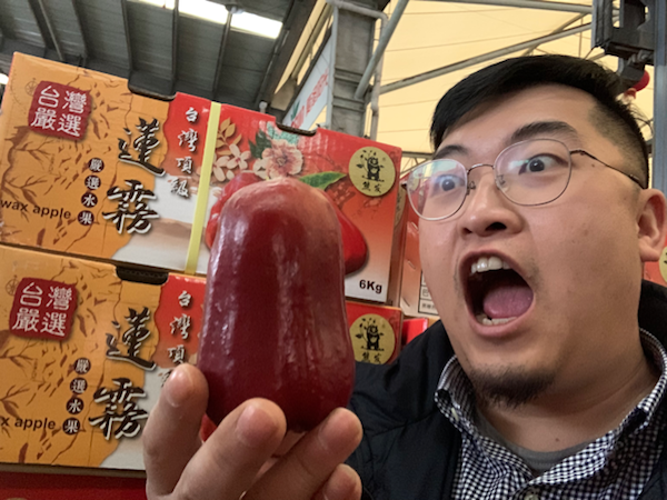This is the peak period of the Taiwanese wax apple season. There are many different varieties such as the milk wax apple, black pearl wax apple, black diamond wax apple, and black steel wax apple. The most popular in the market, however, is the honey wind-chime wax apple.