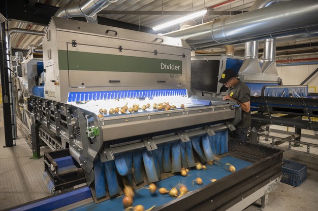 Flikweert Vision also offers the Divider, a machine that removes foreign matter and badly damaged products at the start of the production line. It uses a camera mounted above the conveyor belt and a system that ejects unwanted objects. The device is placed in front of the shearer, assisting in initial quality control.