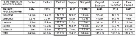 Due to the impact of hurricane Matthew and of bad weather in previous months, the season has been delayed by a week or two. The harvest this year is 11 percent smaller, reaching 9.6 million boxes, according to estimates by the USDA. Of these, 7.5 million boxes correspond to red grapefruit. These prospects have not yet taken the damage caused by hurricane Matthew into account. A grower explains that some fruit has been lost, but that he is especially pleased to still be in business. When the harvest begins, it will be easier to estimate the extent of the damage caused by the hurricane. On average, a 15 percent loss has been estimated.