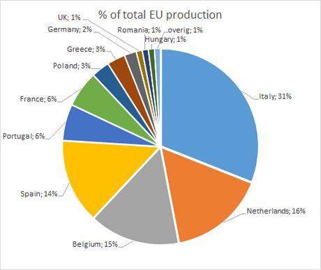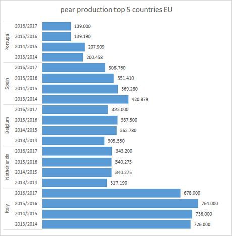 Europe is the second largest producer of pears, only behind China. For the season 2016/2017, the EU's production is estimated at 2.3 million tonnes, down 8 percent from the previous year. With the exception of the Netherlands, the most important producers are all expecting double digit drops. This applies to Italy, Belgium and Spain. The Netherlands, for its part, should record growth.