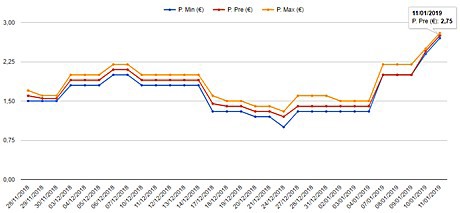 As the graph above shows, first category Sicilian aubergine went from 1.40 euros/kg (as of 31 December) to 2.75 euros/kg (as of 11 January 2019), always at the Turin’s Caat.