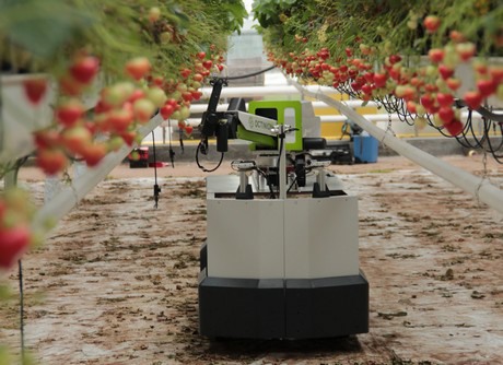 All over the world, people are working on harvesting robots, but there wasn’t yet a robot for harvesting strawberries. After the Fruit Logistica last week, that robot has arrived on the market, because Belgian company Octinion presented the Rubion, a completely autonomous harvesting robot that can take over a lot of work from the grower in combination with other complementary robots. “The robot currently picks a strawberry every five seconds, so that it’s competitive with people,” says Tom Coen, CEO of the Octinion Technology Group.
