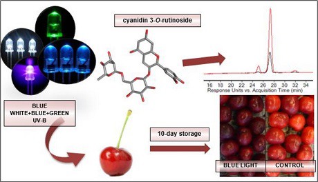 A study from the University of Ljubljana (Slovenia) showed how light wavelengths can influence the quality of cherries in cold storage. Irradiation with blue light increased anthocyanin content, while blue and white-blue-green light increased phennylaline ammonia lyase (PAL) activity. Researchers have in fact found a high correlation between PAL and anthocyanins.