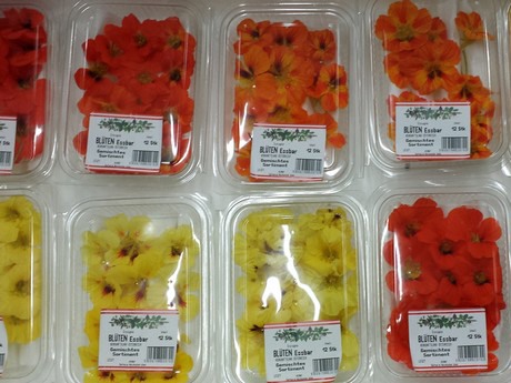 Some of the the best sellers among the edible flowers are Capuchin flowers, violets and daisies. These flowers do not really have a clear peak season, but customers tend to buy more of them in the spring. "Otherwise, overall sales throughout the year are always relatively constant, as are the prices," said Kreimer. Most of the flowers are grown in regional greenhouses. "This is in contrast to the more robust types of herbs, such as mint, which are partially grown in the open field during the summer."