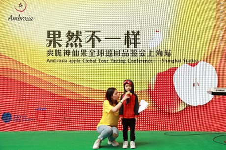 On the afternoon of May 1st, there was a global Ambrosia tasting event held in the Shanghai Jinhongqiao Shopping Center. The theme was “natural taste is really different.” In the past five years, the Ambrosia Apple has grown into a best-selling new apple variety in Europe and America with its superior taste. Therefore, it is one of the few new brands of apples that has been able to promote a different apple variety very well. When the Ambrosia apple comes to China, it should bring a pleasant surprise to the apple retail market.