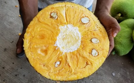 "It's very difficult to tell the quality of a jackfruit by simply looking at it," Miller said. "However, it can matter a great deal when you buy it because jackfruit is typically sold by weight. The inside of the fruit varies considerably by the amount of edible fruit there is, with a typical range of between 30 and 60 percent of the total weight. So potentially if a customer buys a poor quality fruit (even though it looks great on the outside), they are effectively paying double the price per pound if there is only a small amount of edible fruit."