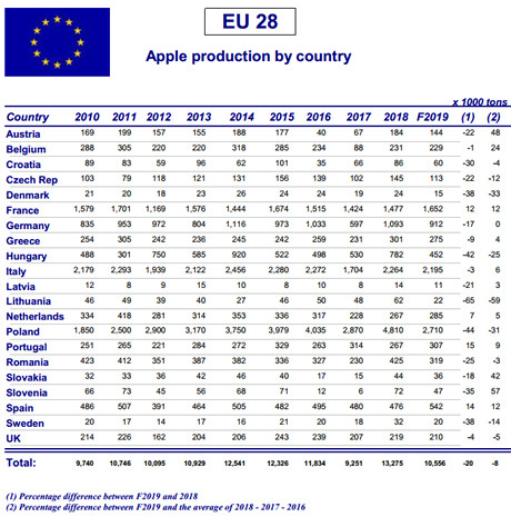 Poland is Europe's apple-growing giant. This country is expected to process 44% fewer apples. The yield is expected to be 2,710,000 tons. Last year, this was still 4,810,000 tons. In Italy, yields are only three percent lower than last year. According to WAPA, this country will have an apple harvest of 2,195,000 tons. France takes third place. They will even have 12% more apples than last year to process - 1,652,000 tons.