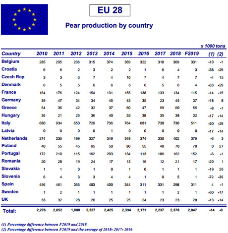 With 511,000 tons, Italy's pear harvest is much lower than last year. It has dropped by 30%. In terms of the average over the previous three seasons, this fruit's yield is 29% lower. In the Netherlands, the pear harvest is expected to be six percent lower, at 379,000 tons. This volume is still 3% more than the average over the last three years. Belgium has 10% fewer pears (331,000 tons) than last year. They are just ahead of Spain. With 311,000 tons, Spain who will harvest four percent more pears.