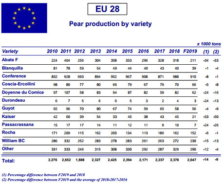 Looking at the different varieties, the European Conference is estimated to be 8% lower than last year. A volume of 910,000 tons is expected. The low Italian pear estimate will result in 34% fewer Abate Fetel pears (211,000 tons) being available. This is according to WAPA's estimate. This makes this variety smaller than the Williams BC (230.000 ton) in Europe.
