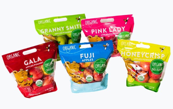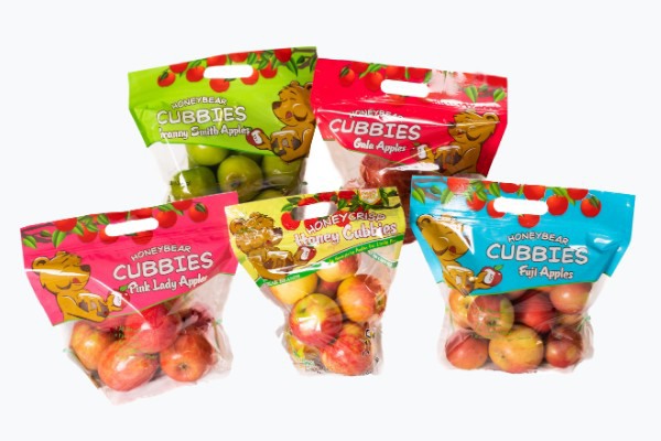 Honeybear said it has experienced success with its two-pound Honey Cubbie pouch for Honeycrisp apples. As an extension of this, Cubbie pouches will be available in three-pound packages for Gala, Fuji, Granny Smith, Pink Lady and Pazazz™ varieties. Honeybear is also updating its organic pouch program which it says complements the continued expansion of all its organic offerings. Consumers will now be able to choose from different varieties (Honeycrisp, Gala, Fuji, Pink Lady and Granny Smith) grown organically and available in two-pound pouches.