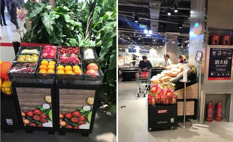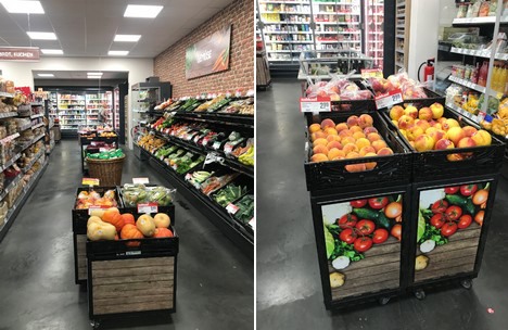 ments and the product to be marketed. The metal basket, for example, is particularly suitable for citrus fruits and melons, while nuts and Pick&Mix products are more likely to be presented in plastic boxes. "We also have special inserts for Ifco and EPS crates. In many modern supermarkets, the flow of goods is mainly concentrated on the weekend. On the days when you sell less, you actually only need small quantities instead of whole crates at the POS. The inserts ensure that the shelves look full, even with small quantities, without the surplus goods spoiling".