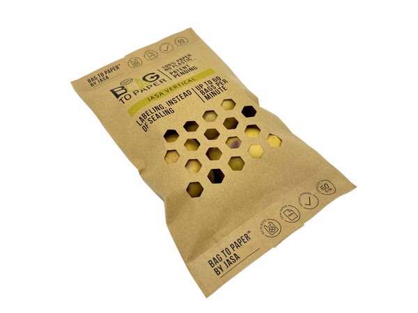 Besides the aforementioned packaging projects, JASA, in 2019, entered the market with a fundamental innovation: the bag-2-paper™. Paper packaging directly from JASA’s vertical packaging machine without the need for sealing, free of any plastic or plastic coating. This sustainable packaging solution has already won three awards: the Dutch NL Packaging Award 2019, the WorldStar Packaging Award 2020, and the WorldStar Sustainability Award 2020.