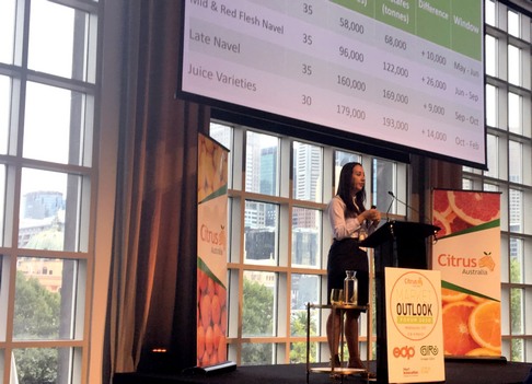 Photo: Mara Milner presenting Citrus Tree Census data at the Market Outlook Forum in Melbourne.