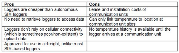 Table 1- Pros and cons of RFID temperature monitoring systems.