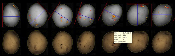 You can use optical sorting technology to measure potatoes, both internally and externally