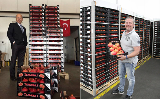 Left: Mr. Gursoy from Gursoy Tarim. The pomegranates with the Tsjakka brand are exclusively packed for the company P. Seelen. Right; Rene Leenders