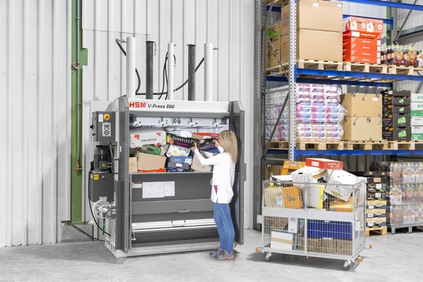 In principle, every HSM baler is suitable for the materials cardboard, paper and film. "For the fruit and vegetable sector in particular, our machines also press packaging film and light wooden crates, etc.". Furthermore, certain models also efficiently compress PET bottles, hard plastics, textiles, barrels etc."