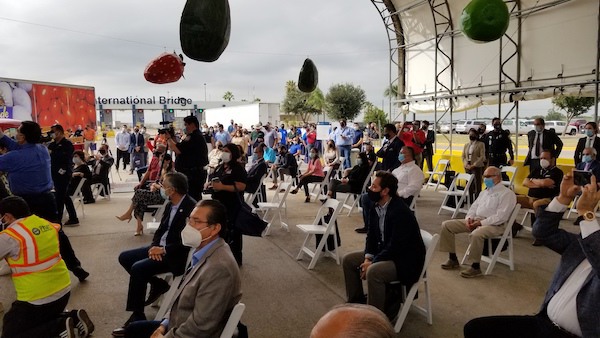 A celebration for the “Start of the Produce Season 2020-2021” was held on October 8, 2020 at the Pharr International Bridge, which seems appropriate for a bridge that crossed 190,174 fresh produce truckloads in FY2020 – more than any other international bridge in the US. Attendance was lighter this year in order to respect Social Distancing orders in place throughout Hidalgo County, but present were individuals representing the fresh produce industry, officials from the City of Pharr, and Texas State Representatives to witnesses the bustling activity the Pharr International Bridge exuded.