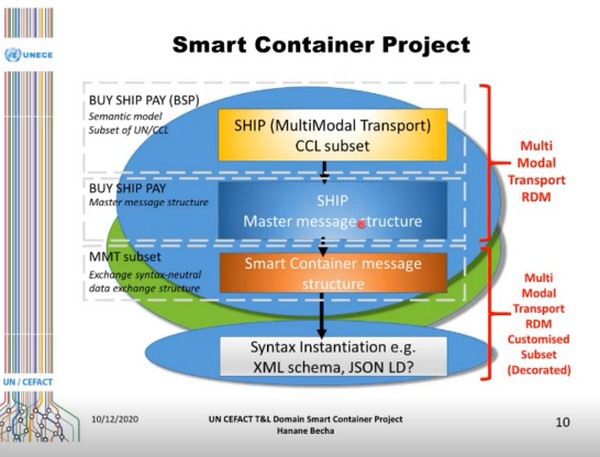 She said that UN/CEFACT Smart containers are the solution if you want to know where your container is, when it arrived at the destination or what the condition of the goods are. The project was launched in 2017 when the governments of Brazil, France, Australia, USA and Italy started work on a white paper. The IoT device can communicate via embedded sensors, remote sensors and the reefer control unit.