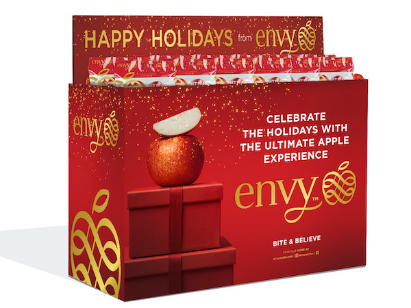 At retail, Envy™ apples are offered in special holiday 2-lb bags with holiday themed display bins. Additional merry and eye-catching point of sale material is also available. Flores Paez noted “as the spirit of Christmas grows during this important shopping period, so too the opportunity to connect with shoppers in relevant and meaningful ways, which is the purpose of this comprehensive Envy™ holiday activation.”