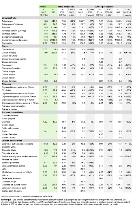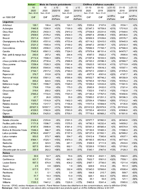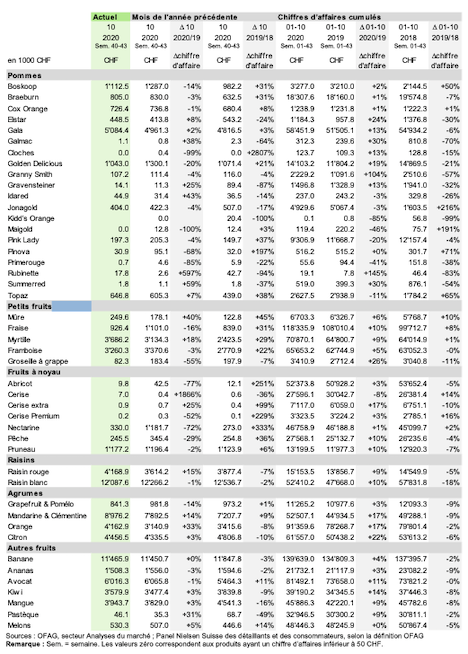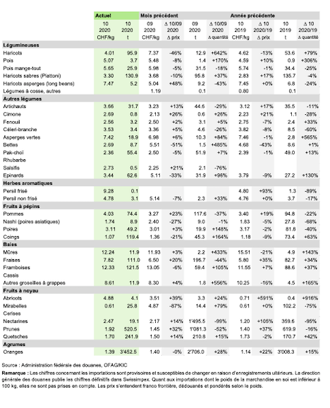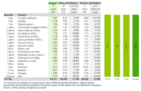 Fruit and vegetable basket: The choice of the 20 components of the fruit and vegetable basket is based on their importance in terms of consumption in Switzerland.