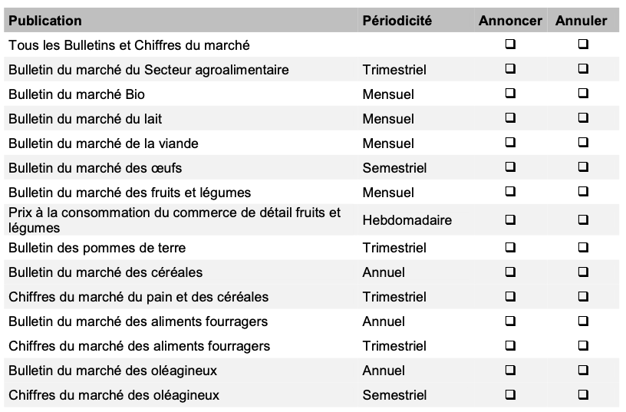 Market Analysis publications are provided free of charge. They can be downloaded from www.observationdumarche.admin.ch under Market Watch. If you wish, we can also send you the newsletter by e-mail. Orders can be placed electronically at www.blw.admin.ch or in writing using the coupon below. Please complete it and return it to us by post (FOAG, Market Analysis Division, Schwarzenburgstrasse 165, 3003 Bern) or by fax (+41 58 462 20 90).