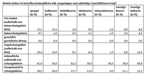 The 'other' berry farms and participants of this survey indicate that almost 22% of the berry fruit areas are located in protected areas.