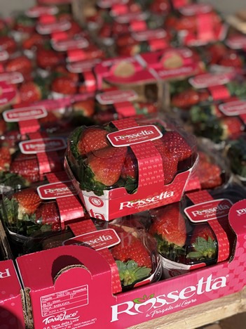 "For this campaign, we have destined around 20 hectares to NSG 120, a variety which will be commercialized under the Rossetta® brand, managed by the Nova Siri Genetics Varietal Club. Compagnie delle Primizie strawberries will be available in a new packaging: a 250 gram cardboard punnet with handle. This choice was made to reduce the use of plastic and help consumers dispose of the packaging."