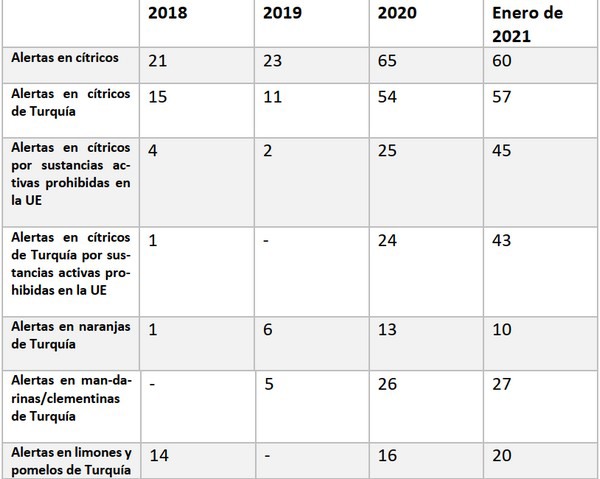 In fact, from January 1 to 29 of the same month, 57 batches of citrus from this country -two on average per day- set off an alarm for irregularities when undergoing any of the scheduled inspections; the vast majority - up to 43 of them - for the presence of unauthorized phytosanitary products. “The RASFF figures are very worrying and should spark an immediate response from the EU health authorities, because this could degenerate, at any given moment, into a food safety problem. What is also clear is the unfair competition that the Spanish citrus sector suffers, given its lack of instruments to fight pests or post-harvest problems that are used, in this case, by Turkish citrus growers,” says the president of the CGC, Inmaculada Sanfeliu.