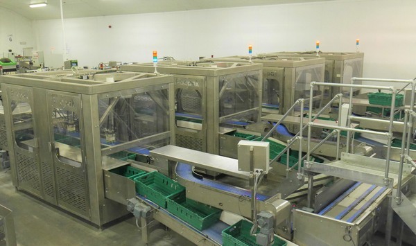 Each of the four UniPAKer crate loading cells at Adrian Scripps houses two delta type robots, each performing a single pick. The benefit of a single pick is that it eliminates the need for accumulation. To maximise packing speed, the crate is dynamically loaded as it is moving;  working alongside each other, the robots take it in turn to partially fill the crate, picking individual packs off the infeed conveyor and positioning them deftly and precisely in the crate at the programmed orientation. The robots perform this task with a degree of dexterity and rotation that would not be feasible with a layer-based automated handling system.