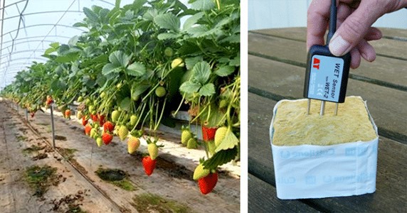 SBR staff have been using the Delta-T Devices WET Kit since 2018 to help manage their hydroponic strawberry production – taking critical measurements of moisture and pore EC (Electrical Conductivity) of the water around the plant roots, several times each day. These measurements are used by their crop managers to finetune fertigation, in order to maintain optimal water and nutrient levels for each crop.
