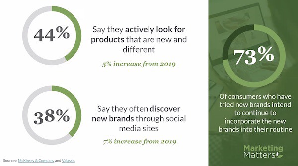 Consumers have been stuck at home and been deprived of many of their usual forms of entertainment for almost a year now and are now more than ever trying out new brands and products. “In a recent survey, 44% of respondents said that they are looking for new brands and products to spice up their everyday lives, and 73% said that they intend to continue to incorporate these new brands and products into their routines. With nearly half of all shoppers looking to find new brands and products, now is the time to clearly and effectively communicate your brand value and product solutions with the consumer. This can be done in a variety of ways, from new photography, launching a blog, branching out your social media account or investing in advertising dollars,” Mackey Almy says.