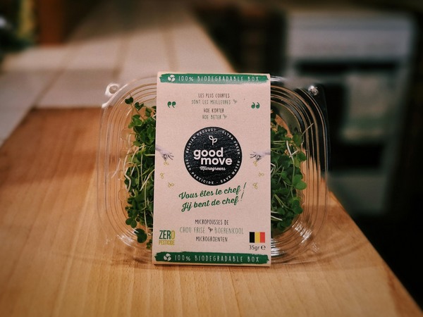 Good Move’s current assortment boasts four kinds of microgreens. “We have radish, mustard, purple radish, and kale in our range. In the coming months, we’re going to expand the range with seven more varieties,” explains Lucas. Shoppers can find Good Move’s microgreens in 35 stores in Belgium already. “We’ve been around for less than a year, but we’ve grown very quickly. That proves there’s a demand for microgreens. Our products are in various organic stores but also in a few independent Delhaize supermarkets. We hope to further expand our client base soon.”