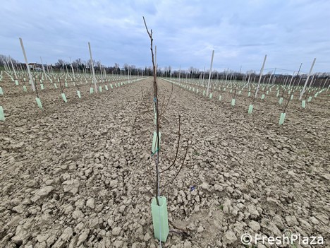 The Castagnoli company planted two hectares with Santa Maria pear trees in November 2020. It is expected that the pears can be harvested at the end of July, after harvesting the Carmen variety and before starting with the William. Castagnoli has planted 50 hectares of its 100 hectares for the cultivation of apples, pears, plums and kiwis.