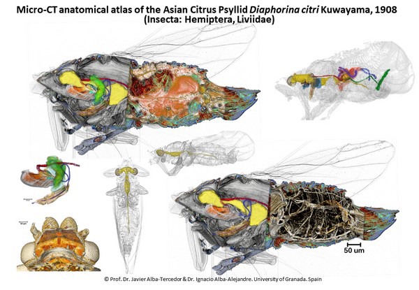 Scientists from the University of Granada have made the first anatomical atlas of a tiny 3-millimeter insect called Diaphorina citri, the Asian citrus psyllid (ACP), responsible for the greatest economic losses in citrus crops around the world.