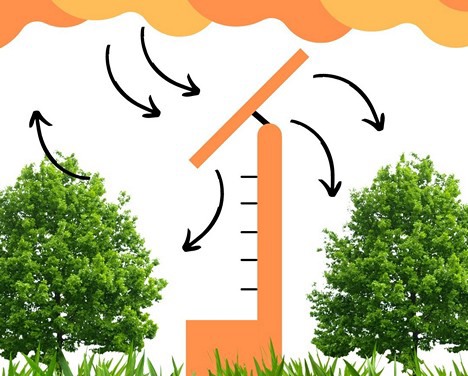 "The area protected by a fan has an oval shape, which orients itself depending on the direction and intensity of the night breeze. In general, around 2/3 of the protected area are along the direction of the breeze, while 1/3 is in front of it. Isotherms also show that fans are more effective 20 m from units and that the protection extends to 5-7 hectares. Fans mix the warmer layers of the air forming 14-15 m above ground (inversion layer) with the cooler air surrounding the trees. In general, the temperature during a frost event is 4.5.5.0°C lower around the plants than 15-18 m from the ground."
