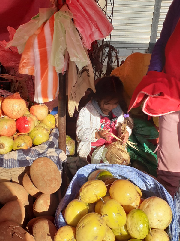 "That's a tropical area a few hours' drive from Cochabamba. Fruit is traded at that market. There are bananas of various varieties, colors, and sizes. As well as coconuts, pineapples, passion fruit, guanabanas, and so on. All kinds of tropical fruit, deliciously ripe." Paul, who's originally from the Netherland, took these photos.