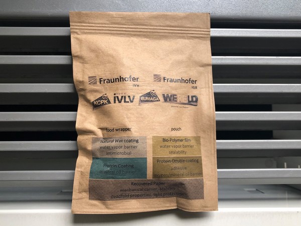 The Fraunhofer Institute for Process Engineering and Packaging IVV and the Fraunhofer Institute for Interfacial Engineering and Biotechnology IGB have now presented an innovative and sustainable solution for food packaging. Just as with conventional packaging, it keeps the food fresher for longer. The new packaging, though, involves no plastic whatsoever. After use, it can be recycled without a problem.