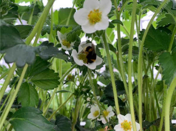 “The weather has been cold but sunny. The sun radiation helped with keeping high temps in the glasshouse. We’ve been utilising heat produced by the Anaerobic Digester on site ( 3MW/hr) to keep good temps during critical periods (early mornings and dull days). The crop is grown in raised gutters with 100% coir substrate. Climate control computer tracks and alters irrigation, humidity, temperature, ventilation, heating, CO2 dosage. We support the advancement of high-tech, sustainable farming in the UK, and by extending the UK season avoid the unnecessary food miles that come from imported strawberries at this time of year.”
