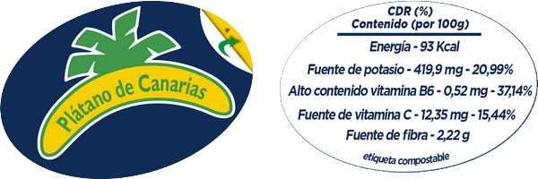With this initiative, Plátano de Canarias becomes the first fruit to incorporate a label with nutritional information, and also in a 100% compostable and biodegradable format.