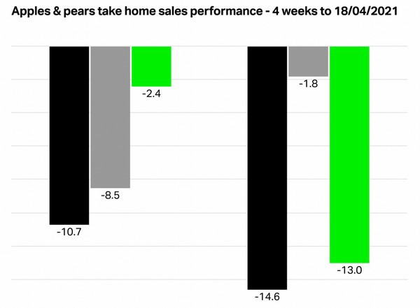 In the four weeks to 18 April 2021, the take home fruit category has declined by -5.3% in dollar sales and -4.9% in volume sales versus the same time a year ago.