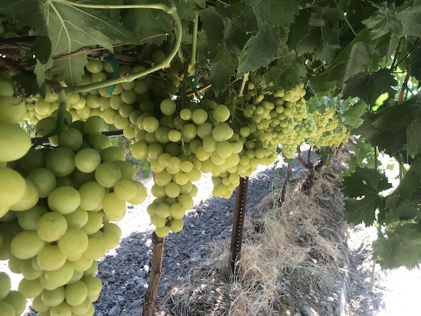 The heat is slowing down the maturity of grapes. “Typically in hot temperatures, the plant will retrieve sugars and store more carbohydrates to deal with the heat stress,” says Markarian. “So sugar development in the fruit is slower.” He also adds that the leafy canopy has a tendency as well to defoliate if it’s stressed too much by the heat, and that defoliation in turn can cause sunburn on certain varieties.