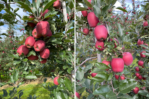 The season's prospects look excellent. The apple crop should be twice as big as last season. And the quality is expected to be high. The farmers' trees are full of apples, ready for harvesting.